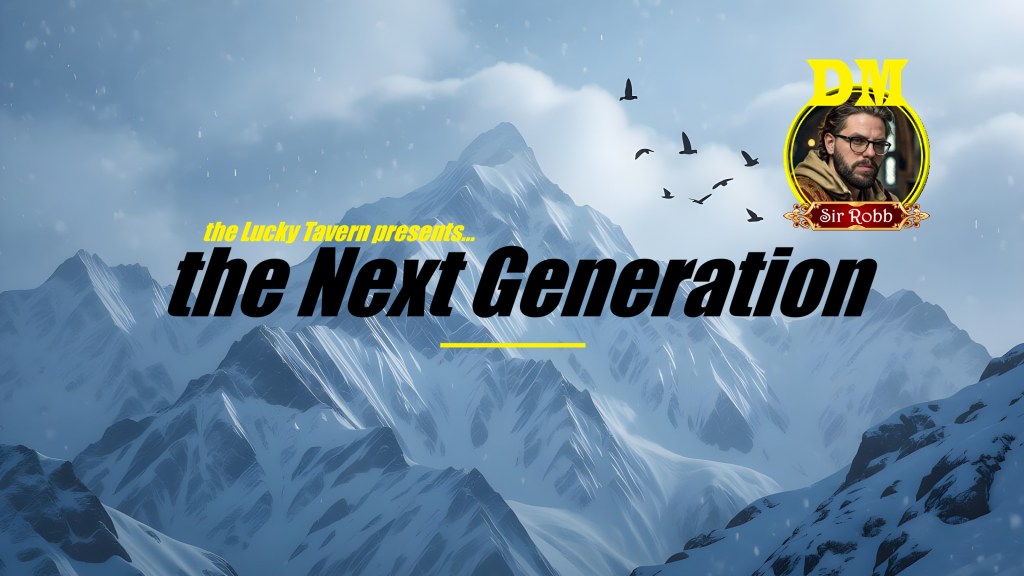*the Lucky Tavern presents… the Next Generation* is an original homebrew game for Dungeons & Dragons 5E, written and run by Sir Robb of House Doe, produced for YouTube by ne4and3rthal, played by a merry group of enthusiastic friends and presented here for your viewing pleasure!